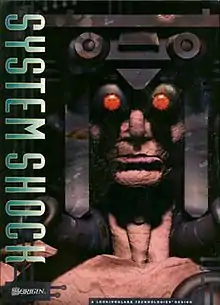 The player advances the plot by acquiring log discs and e-mails: the game contains no non-player characters with which to converse.[7][8][9] Throughout the game, an evil artificial intelligence called SHODAN hinders the player's progress with traps and blocked pathways.[10] Specific computer terminals allow the player to temporarily enter Cyberspace; inside, the player moves weightlessly through a wire-frame 3D environment, while collecting data and fighting SHODAN's security programs. Actions in Cyberspace sometimes cause events in the game's physical world; for example, certain locked doors may only be opened in Cyberspace.[7] Outside of Cyberspace, the player uses the game's sixteen weapons, of which a maximum of seven may be carried at one time, to combat robots, cyborgs and mutants controlled by SHODAN. Projectile weapons often have selectable ammunition types with varying effects; for example, the "dart pistol" may fire either explosive needles or tranquilizers.[7][8] Energy weapons and several types of explosives may also be found, with the latter ranging from concussion grenades to land mines.[7]