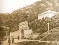 In 1849, after the Imperial Russian intervention in support of the Austrian Monarchy (see Hungarian Revolution of 1848), Tâmpa became home to a pyramid-shaped monument, raised on the initiative of Lieutenant General von Hassfort and bearing the inscription Rusia et Austria unitæ MDXXXIL ("Russia and Austria united 1849"). Heavily damaged by either natural causes or, according to George Bariţ, human intervention ("adverse hands"), the pyramid was ultimately removed by Austro-Hungarian authorities on April 7, 1869.[2]