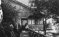 After 1865, Tâmpa housed the Schützenhaus (the "Shooting range"), soon a favorite with the city's male population. Aside from fire practice, the location had a bowling lane and a restaurant; it was decorated with numerous hunting trophies and mannequins dressed in plate armors. The building was badly damaged by a 1916 fire, and for a long time remained derelict. Ultimately, the Dr. Nicolae Rucăreanu High School of Silviculture was raised on the location — the plot remains disputed between the Evangelical Church and the city of Brașov.