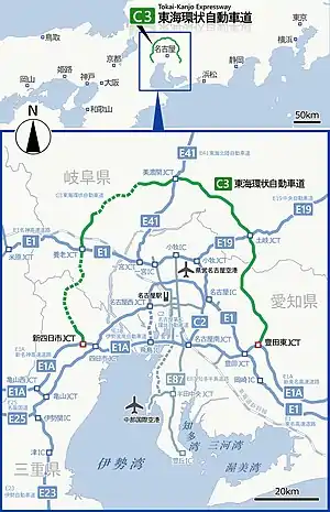 Once completed, the expressway will form a 160 km ring road for the Tōkai Region.[4] It is hoped that the expressway will reduce traffic congestion, link important industrial and manufacturing centers in the region, and facilitate access to Chubu International Airport and tourist areas in rural Gifu Prefecture.