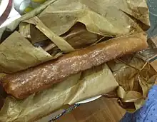 ![]() Bánh tro (bánh gio) dotted with mật mía, a traditional cake often eaten during Tết Đoan Ngọ | |