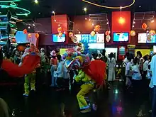 In some rural areas, where neighbors have closer relationships, people often organize so children can carry lanterns together through villages, hamlets and neighborhoods on the Tết Trung Thu night. Lantern festivals can be initiated by the local government or by youth groups in the village. Participants compete to have the largest or prettiest lanterns in the procession. In Phan Thiết (Bình Thuận), a large-scale lantern procession was held with thousands of elementary and junior high school students marching through the streets. This festival was set as the largest record in Vietnam. It is a traditional mid-autumn lantern procession festival dating back hundreds of years, and the scale of the festival in Phan Thiết increases every year, but also becomes more "commercial".[7] In Tuyên Quang, there is also a large lantern procession festival, fully mobilized from the creativity of the people, from village to village, which has not been commercialized.