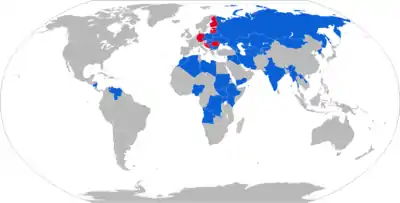 The T-72 is a family of Soviet main battle tanks that entered production in 1969.[9] The T-72 was a development to the T-64 (as a rival project), which was troubled by high costs and its reliance on immature developmental technology. About 25,000 T-72 tanks have been built, and refurbishment has enabled many to remain in service for decades.[10][11] It has been widely exported and has seen service in 40 countries and in numerous conflicts. The Russian T-90 introduced in 1992 and the Chinese Type 99 are further developments of the T-72.[12][13] Production and development of various modernized T-72 models continues today.