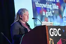 ![]() T.L. Taylor speaking at the 2017 Game Developers Conference | |