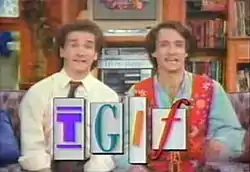 TGIF was an American prime time television programming block that has aired on ABC at various points since the late 1980s. The name comes from the initials of the popular phrase "Thank God It's Friday"; however, the stars of the lineup touted the initialism meaning "Thank Goodness It's Funny." In its various incarnations, the block mainly featured situation comedies aimed at a family audience, and served as a lead-in to the long-running newsmagazine 20/20 (which has been part of ABC's Friday night schedule since September 1987, two years prior to the original launch of TGIF).