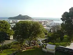 Tabarka (Arabic: طبرقة ⓘ) is a coastal town located in north-western Tunisia, close to the border with Algeria. Tabarka was occupied at various times by Berbers, Punics, Greeks, Romans, Arabs, Genoese and Ottomans. The town is dominated by an offshore rock on which there remains a Genoese castle. Nationalist leader Habib Bourguiba, later president of post-independence Tunisia, was exiled on Tabarka by the French colonial authorities in 1952.[1] Tourist attractions include coral fishing, the Coralis Festival of underwater photography,[2] and its annual jazz festival.[3]