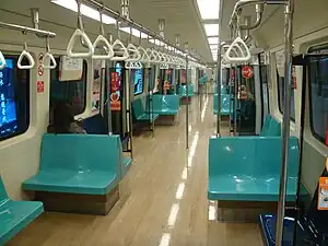 From 2011 to 2012, the C301 cars underwent refurbishment, and were fitted with new air-conditioning, surveillance, and fire detection systems. The original wood-style flooring was replaced with mostly white flooring, and the previously red LED in-train information systems were replaced with new LED in-train information systems.[5] The first 11 C301 trains also received new IGBT–VVVF inverters from Bombardier Transportation in 2013.