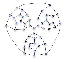 The fragment can then be used to construct the non-Hamiltonian Tutte graph, by putting together three such fragments as shown on the picture. The "compulsory" edges of the fragments, that must be part of any Hamiltonian path through the fragment, are connected at the central vertex; because any cycle can use only two of these three edges, there can be no Hamiltonian cycle.