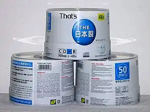 Spindles of That's brand blank CDs made by Taiyo Yuden