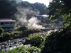 ![]() Takanoyu Onsen and steam rising from the hot spring | |