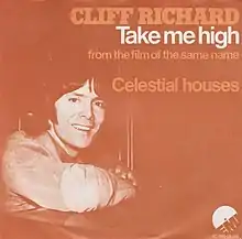 "Take Me High" is a song by British singer Cliff Richard, released as a single in November 1973. Written by Tony Cole, it is the title track from the film of the same name in which Richard also stars. It was released as a single with the B-side "Celestial Houses", written by Terry Britten, and peaked at number 27 on the UK Singles Chart.[2]