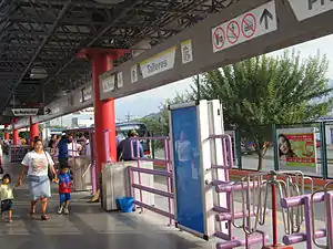 Although this part of Line 1 was operational from the start, the original terminal of Line 1 was San Bernabé station.[2] At that time the line from San Bernabé to Talleres was only used to get trains to the shops. It was not until June 11, 2003, that this portion of the line was opened for passenger service and Talleres became a station.[3]