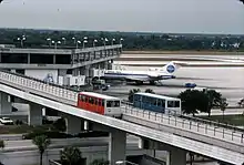 An automated monorail system also once connected the main terminal on Level 5 to the long-term parking garage,[18] stopping at each elevator bank in both buildings. It was installed in 1991 when the long-term parking garage was built.[10] It used six Bombardier UM III vehicles, which are also used on the Jacksonville Skyway.[1]
