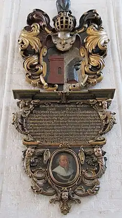 One of the family's coats of arms, with a portrait of Otto Tanck in Lübeck.