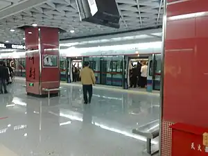 Tancun Station (Chinese: 潭村站; Cantonese Yale: Tàahmchyūn Jaahm), formerly known as Saimachang Station (赛马场站; 賽馬場站; Choimáhchèuhng Jaahm; literally Racecourse Station) whilst in the planning stage, is a station on Line 5 of the Guangzhou Metro.[1] It is located under Huacheng Avenue (花城大道) in the Tianhe District, near Guangzhou Racecourse (广州赛马场).[2][3] It opened on 28 December 2009.[4]