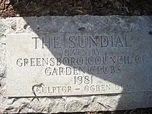 The Tanger Family Bicentennial Garden is a historical garden and visitor center located in Greensboro, North Carolina. It was created in 1976 to recognize and honor the 200th anniversary of the United States (its bicentennial). The garden features a man-made circulating stream, a wedding gazebo, and a variety of artistic and historical sculptures. Throughout, many different plants and shrubs decorate the landscape including annuals, perennials, flowering trees, and canopy trees.[1] Greensboro Beautiful is a non-profit organization that raises funds for the garden,[2] while the Greensboro Parks and Recreation Department oversees the events offered.[3]