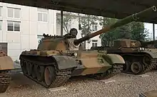One Soviet T-62 tank was disabled and captured by the People's Liberation Army during the 1969 Battle of Zhenbao Island. The T-62 (No. 545) was hit by a rocket-propelled grenade fired from the Type-56 (Chinese copy of RPG-2) RPG launcher on the morning of 15 March 1969 during a PLA counterattack. On 16 March 1969, the Soviets entered the island to collect their dead. The Chinese held their fire. On 17 March 1969, the Soviets tried to recover the disabled T-62 from the island, but their effort was repelled by Chinese artillery.[33] On 21 March, the Soviets sent a demolition team attempting to destroy the tank. The Chinese opened fire and thwarted the Soviets.[33] The tank was later sunk in the frozen Ussuri (Wusuli) River to avoid being captured and studied by the Chinese Army. On April, with the help of divers of the Chinese navy, the PLA pulled the T-62 tank onshore. This tank was later studied, and the information gathered from those studies was used for the development of the Type 69 main battle tank.[34] The tank was later given to the Chinese Military Museum.