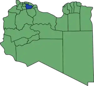 Tarhuna wa Msalata (Tarhuna and Msallata) was a district of Libya until 2007.[1] Between 1988 and 1995 there existed the Tarhuna District, which became Tarhuna wa Msalata between 2001 and 2007. It consisted of twenty-six Basic People's Congresses,[1] similar to townships, and its capital was Tarhuna. In the 2007 administrative reorganization the territory formerly in Tarhuna wa Msalata was transferred to Murqub District.[2]