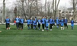 Tammeka was founded on 13 June 1989 as a youth academy by Hillar Otto, Avo Jakovits and Heino Ligi.[2] In 2000, the club joined the Estonian football league system and began competing in the Southern division of the III liiga. Tammeka's debut season was a success as the team finished first with 46 points out of the possible 60. Tammeka was promoted to the II liiga, and in 2001, to the Esiliiga. The club established itself in the Esiliiga by placing sixth in the 2002 season and seventh in the 2003 season. Tammeka won the Esiliiga in the 2004 season and was promoted to the Meistriliiga. The team defeated Dünamo 9–0 in their first Meistriliiga match and finished their first season in the Estonian top flight in seventh place. In December 2005, Sergei Ratnikov was appointed as manager. Tammeka finished the 2006 season in sixth place.[3]