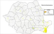 Tatars of Romania or Dobrujan Tatars[3] (Romanian: Tătarii din România; Dobrujan Tatar: Tomrîğa tatarlarî) are a Turkic ethnic group that have been present in Romania since the 13th century. According to the 2011 census, 20,282 people declared themselves as Tatar, most of them being Crimean Tatars[4][5][6] and living in Constanța County. But according to the Democratic Union of Tatar Turkic Muslims of Romania there are 50,000 Tatars in Romania. They are one of the main components of the Muslim community in Romania.