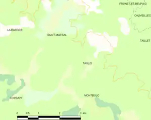 Map of Taulis and its surrounding communes
