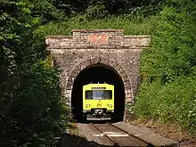 Extensive renovation of the Hasselborn tunnel is required for the extension of electrification to Brandoberndorf. The exact cost was expected to be known in May 2015.[20] In November it was announced that the Rhine-Main Transport Association, the Hochtaunuskreis and the Lahn-Dill had agreed on the work. The RMV agreed to assume a 70% share of the €10 million costs. The rehabilitation is also only possible after the municipality of Waldsolms approved funding for an alternative drinking water supply for the district of Hasselborn (instead of water collected from leakage into the tunnel).[21] Work was scheduled to start around the clock from the start of the summer 2016 holidays until the end of the autumn holidays in a multi-shift operation.[22] On 31 October 2016, the work was completed after four months and the tunnel was reopened for traffic. In this work, 23 of 161 blocks (about 194 metres) of the tunnel were rehabilitated and the remaining blocks are to be rehabilitated in various stages of construction until 2021. The cost of the current construction stage amounts to €3.3 million and the entire renovation of the tunnel is currently estimated to cost about €10 million.[23]