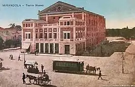 ![]() The Teatro Nuovo in the early 20th century with the terminus of the horse tram. | |