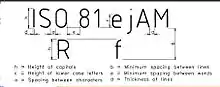 | Spacing between characters | a | (2/14)h | 0.35 | 0.50 | 0.70 | 1.0 | 1.4 | 2 | 2.8 |