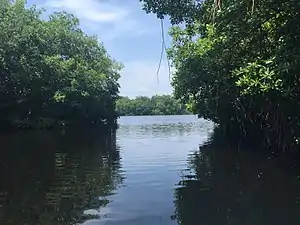 The characteristic mangrove tree species of the region are Red mangrove (Rhizophora mangle), white mangrove (Laguncularia racemosa), yellow mangrove (Rhizophora harrisonii), black mangrove (Conocarpus erectus), and water zapotón (Pachira aquatica).[1]