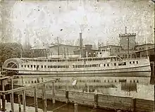 In February 1905, Telegraph was owned by the Seattle, Everett and Tacoma Transportation Company, and was running between Seattle and Everett, alternating with the steamer City of Everett.[12] In April 1905, Captain Scott announced that he would put Telegraph on the day run between Seattle and Bellingham in the summer.[13] In 1905, Telegraph was transferred temporarily from Seattle to Portland, Oregon to handle increased passenger traffic arising from the Lewis and Clark Centennial Exposition.[14]