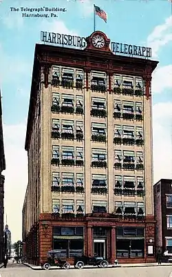 ![]() The former Harrisburg Telegraph Building as illustrated on a 1910 postcard | |