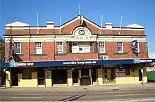 Tempe's commercial area is located along the Princes Highway. The main shopping strip includes the Tempe Hotel, a newsagency, a light and sound store, a doctor's surgery, a dentist's surgery, a Thai Restaurant, a picture framing business "Frame Up", and Camera Warehouse. The Riverview Hotel, formerly Valve Bar and Venue,[16] formerly the Harp Irish Pub, and originally the Riverview Hotel (built in 1922), is located on the Princes Highway close to Harry's Cafe de Wheels, formerly known as Deno's Diner, formerly known as Cobb & Co., a fast food outlet designed on the 1950s drive-in model.