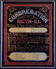 Most of the early members of the congregation were merchants with stores on High Street selling clothing, shoes, and saddles including the Globe Shoe and Clothing Store, Straus Saddlery, Goldman Clothing Store, The Reliable Store, Czarlinsky's and later Herman's Department Store and Leeds.[3]