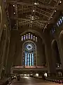 In 1929, the congregation moved to its present location at 65th Street and Fifth Avenue, where the Temple building was constructed to designs of Robert D. Kohn[1] on the former site of the Mrs. William B. Astor House. The vast load-bearing masonry walls support the steel beams that carry its roof. The hall seats 2,500, larger than St Patrick's Cathedral.[2]