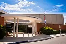 The current building, completed in 1953, was the first religious building designed by architect Sidney Eisenshtat, who went on to become a noted designer of synagogues and Jewish academic buildings.[9] Built with red brick and concrete, it is considered an important example of modernist synagogue architecture.[10]