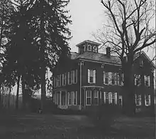 "Templemoor", also known as the Post-Crawford House, is a historic home located near Clarksburg approximately halfway between Romines Mills and Peeltree, in Harrison County, West Virginia. It was built in 1874 for Ira Carper Post, and is a 2+1⁄2-story brick mansion in the Italianate style. It features a combination hip and gable roof covered in polychrome slate shingles. It was the boyhood home of noted West Virginia author Melville Davisson Post (1869-1930) who was famous for mystery and fiction novels. The home includes 13 rooms, many featuring top-of-the-line woodwork.[2]