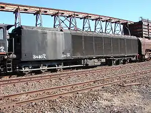 On British railways, brake tenders were low, heavy wagons used with early main line diesel locomotives. One or two were coupled in front or behind the locomotive to provide extra braking power when hauling unfitted or partially fitted freight trains (trains formed from wagons not fitted with automatic brakes).[14][15] They were required as the lighter weight of the new diesel locomotives, compared to steam, meant that they had comparable tractive effort (and thus train hauling capacity) but less braking ability.[16] Originally intended to be used in North East England, where they were usually propelled (pushed) by the locomotive, and later used in other regions. On the Southern Region they were normally hauled behind the locomotive.[14]