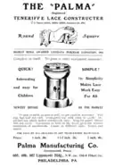 Competing instruction books were published to help guide the crafter in the creation of various Teneriffe motifs and using different devices.[6] The "Palma" style device[7] advertised that no pins were required, and the handheld model had grooves for making the needle actions easier.