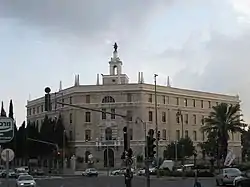 The building was erected in 1926 to house a boys' school named in Italian "Opera Cardinal Ferrari"[2] in honour of a recently deceased Archbishop of Milan who had shown much engagement for social justice.[3] The project was run by a charitable Catholic lay institution initiated by Cardinal Ferrari, the Congregation of Saint Paul of Milan (established in 1920 as the Company of Saint Paul, since 1924 a Congregation dependent directly on the Holy See, also known in English as the Society of St. Paul (CSP);[3][4] not the Società San Paolo of Alba, as sometimes written).[2] The school was designed by the Franciscan architect Antonio Barluzzi, who crowned the building with a replica of the statue of the Virgin Mary which stands on top of the Milan Cathedral, the Madonnina.[2] It was inaugurated in 1927.[5]