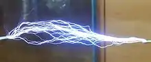 Electric discharge showing the lightning-like plasma filaments from a 'Tesla coil'