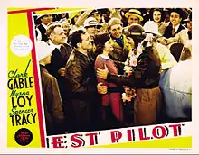 Test Pilot is a 1938 American drama film directed by Victor Fleming, starring Clark Gable, Myrna Loy and Spencer Tracy, and featuring Lionel Barrymore. The Oscar-nominated film tells the story of a daredevil test pilot (Gable), his wife (Loy), and his best friend (Tracy).