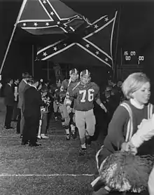 After founding the Southland Conference as a charter member for the 1964 season, by 1966, the school officially became the University of Texas at Arlington.[2] UTA won conference championships in 1966, 1967 and 1981 seasons in addition to winning their lone bowl game, the 1967 Pecan Bowl.[2] The program would be officially disbanded after an announcement by then university president Wendell Nedderman on November 25, 1985, citing financial loss and low attendance as the primary impetus for its abandonment.[2][5][6]