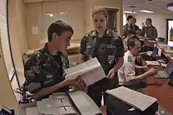 Texas runs a cadet program, which is organized among military lines and emphasizes Air Force traditions and values.[6] Every summer and winter, CAP cadets from Texas and other wings may sign up for a training course located at the Texas Wing Civil Air Patrol Encampment at various military bases around Texas where cadets study military customs and courtesies, military drill, aerospace, and future opportunities in Civil Air Patrol.[7]