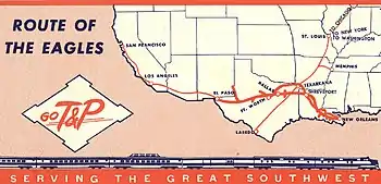 Major named passenger trains of the Texas and Pacific (route sections between St. Louis and Texarkana were operated by Missouri Pacific):
