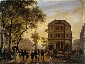 ![]() The entrance to the Théâtre de l'Ambigu-Comique on the day of a free show. Louis-Léopold Boilly (1819) | |