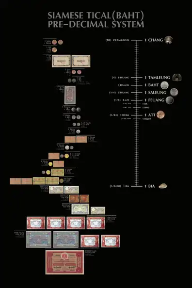 - ↑ "The History of Siamese Money". Welcome to Chiangmai & Chiangrai. June 16, 2010. Archived from the original on September 28, 2011. Retrieved October 25, 2018.