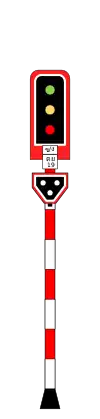 ![]() | Green | Home / Starter | Clear | Proceed on straight route, next signal at Yellow or Green |