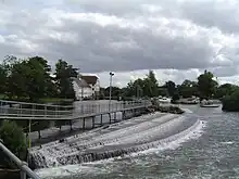 Lock replacements continued with Marsh in 1888, Temple in 1890 and Cookham in 1892 The first new lock was built at Radcot Lock in 1892, and Chertsey Lock was lengthened in 1893.[18] A major work in 1894 was the Richmond Lock and weir complex built to ensure that there is always at least a 5 feet 8 inches (1.73 m) depth of water in the river between Richmond and Teddington.[19][20][21][22]