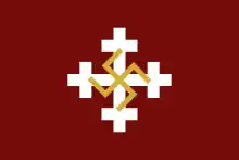 The Finnish Airforce units still wear a swastika on their colours.[13][14] In addition, the shoulder insignia of the Airforce Headquarters bears a swastika design.[15] In 1945, the Air Force changed its national emblem to a roundel, but the use of swastika in some other insignia was continued. In 1958, the President of Finland Urho Kekkonen inaugurated the colours of the Air Force units which feature a swastika design. The latest colour of this pattern was inaugurated by president Tarja Halonen 25 October 2005 for the newly formed Air Force Academy.[15] Also the Utti Jaeger Regiment, responsible for training special forces, bears a swastika-like emblem (sun cross) on its colour. In January 2017, the Air Force Command replaced its emblem, which had contained a swastika, with a design reminiscent of the Air Force service emblem; a golden eagle and a circle of wings.[16]