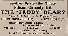 The 'Teddy' Bears is an American silent film directed by Edwin S. Porter and Wallace McCutcheon, and produced by the Edison Manufacturing Company starting as the fairy tale Goldilocks and ending as a political satire of United States President Theodore Roosevelt.[1]